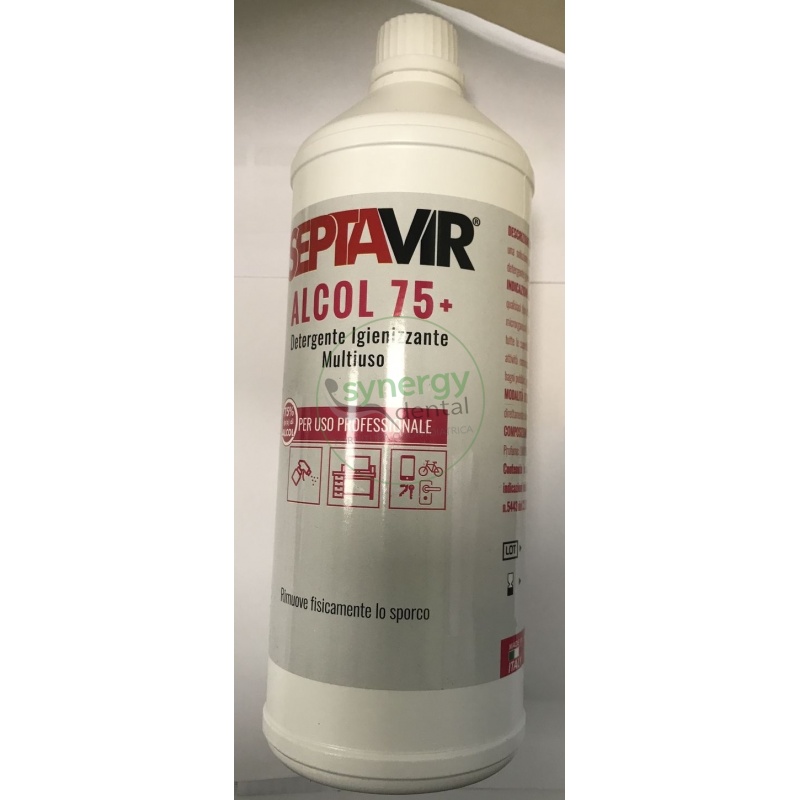 SEPTAVIR ALCOOL 75 + è una soluzione alcolica pronta all’uso, ad azione detergente igienizzante, per uso professionale. Indicato soprattutto per la pulizia di superfici altamente contaminate, come quelle di strutture sanitarie, ospedaliere, laboratori di analisi, attività commerciali ad alta affluenza. L’efficacia del prodotto è assicurata dalla concentrazione di alcool etilico al 75%, corrispondente alla concentrazione consigliata dall’Organizzazione mondiale. Secondo le indicazioni della circolare del Ministero della Salute n. 5443 del 22/02/2020 Covid-19. Igiene quotidiana di superfici di strutture sanitarie, ospedaliere, laboratori di analisi, attività commerciali ad alta affluenza, ecc. La sua formulazione lo rende particolarmente efficace per la pulizia di tavoli da lavoro, ripiani, lettini, superfici dure, oggetti di uso frequente, ecc. per uso professionale. Il prodotto va usato tal quale senza diluizioni, pronto all’uso nebulizzare direttamente sulle superfici. Non necessita di risciacquo.